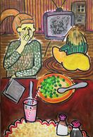 The green peas. The dreaded green peas. They seem to multiply before her as she anticipates their disgusting green taste. (Fingernails taste much better!) The green peas. The dreaded green peas. You MUST NOT get up until they are gone! Bobby and Sissy dance on.
